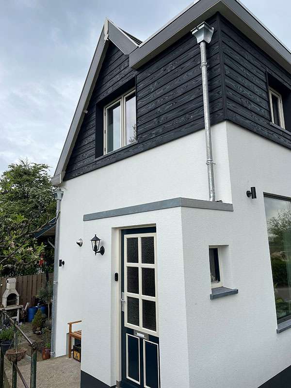 Het aan de buitenkant isoleren van de woning, de zogenaamde na isolatie, is de beste methode om uw woning te isoleren. De isolatiewaardes van deze systemen zijn erg hoog. De standaard EPS platen, die we gebruiken zijn 120 mm dik, wat resulteert in een Rd-waarde van ca. 3,5 m2K/W. Tegenwoordig gebruiken we echter ook steeds meer platen van 150 mm, wat resulteert in een Rd-waarde van ca. 5 m2K/W. Indien gewenst, bijvoorbeeld bij het energieneutraal maken van uw woning, kunnen we de platen nog dikker leveren.